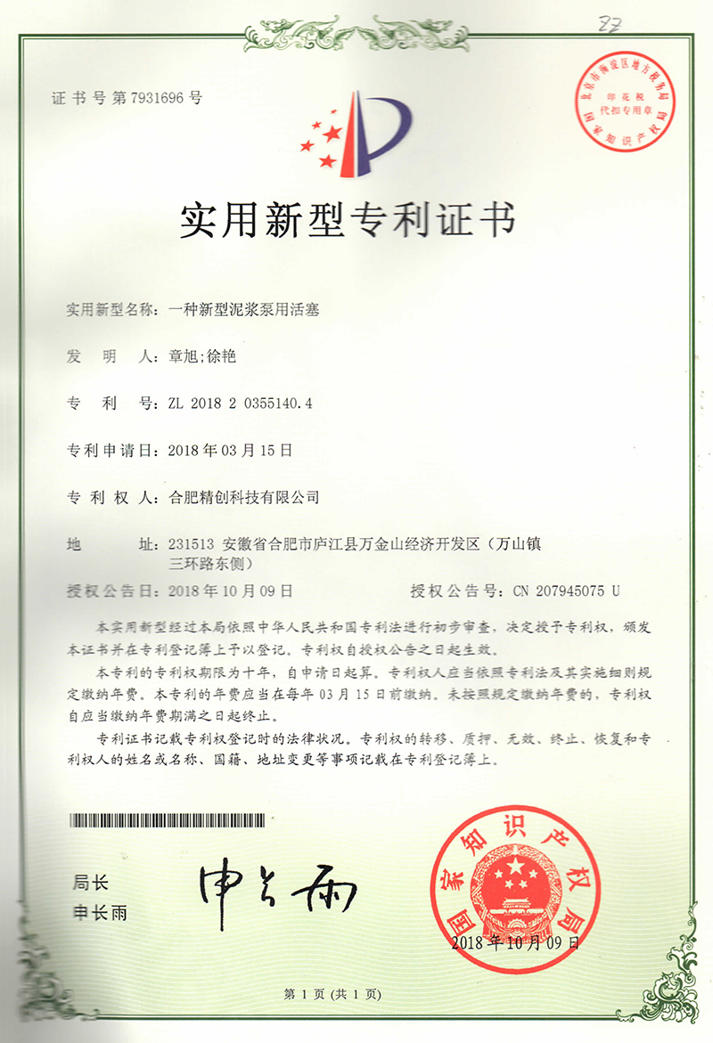 (2018實(shí)用新型)一種新型泥漿泵用活塞